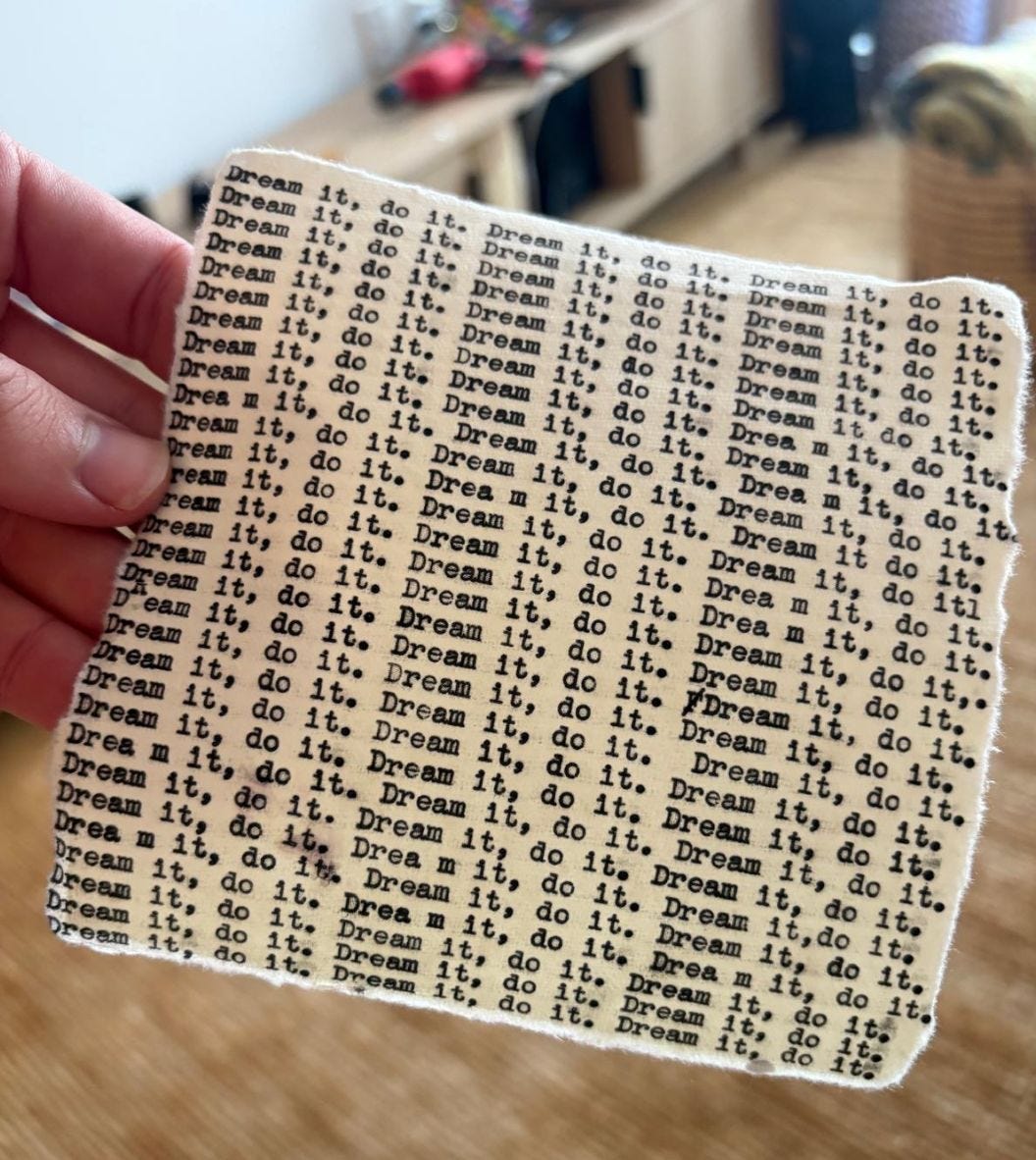 Mostly tiny pieces. Typewriter words. Often using found objects, my fingerprints, and embroidery.